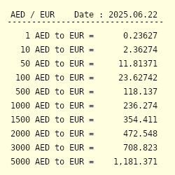 Aed To Eur Exchange Rate Uae Dirham To Euro Conversion