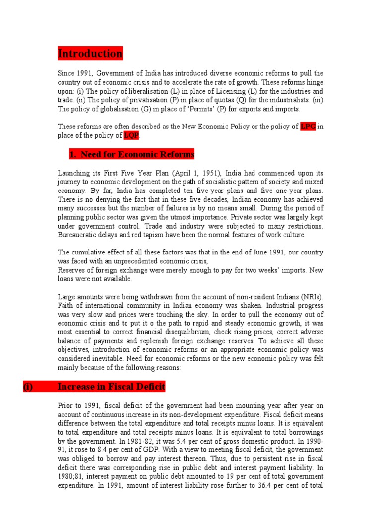Economic Reforms Since 1991 Or New Economic Policy Reserve Bank